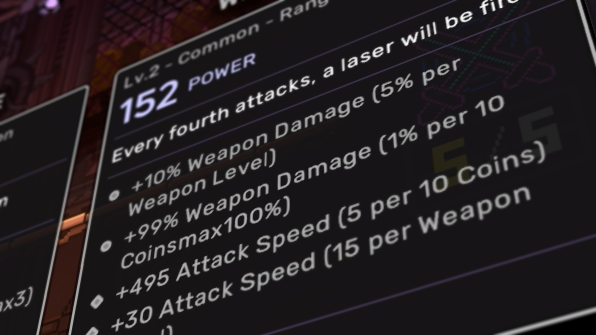Waffen verfügen nun über ein neues Affix-System. Jede Waffe hat feste Affixe und zufällig generierte dynamische Affixe. Dynamische Affixe umfassen direkte Schadensboni, Ressourcenboni und einzigartige Mechaniken. Höhere Waffenlevel erhöhen die Wahrscheinlichkeit und Wirksamkeit dynamischer Affixe. Mit anderen Worten: Es ist eher Glückssache, aber wenn man den richtigen Treffer landet, geht die Waffe richtig ab!