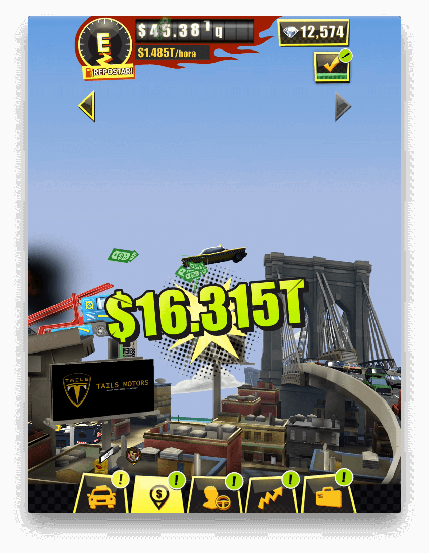 A partir de hoy, la gente en todas las partes del mundo puede reclamar las calles y defender su territorio contra las hordas con las que comparten carreras. Descarga y juega a Crazy Taxi Gazillionaire y prueba que tienes lo que se necesita para hacer crecer tu empresa (un poco loca) de taxis local y gana millones, miles de millones e incluso miles de millones de dólares.