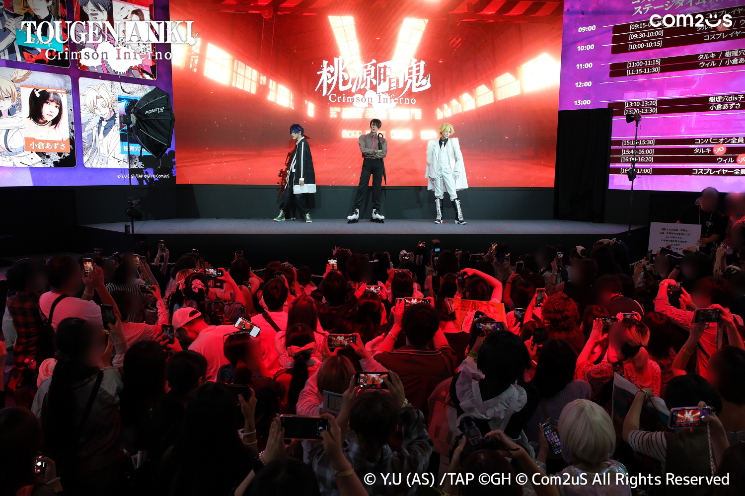 Les comĂ©diens de doublage, dĂ©jĂ prĂ©sents dans lâanime TV et dĂ©sormais dans le jeu, sont montĂ©s sur scĂšne pour Ă©changer avec les visiteurs, tandis que les cosplayeurs ont brillamment incarnĂ© les personnages principaux. Entre les zones photo, la chasse aux tampons et les Ă©vĂ©nements avec cadeaux, le stand TOUGEN ANKI Crimson Inferno a connu une affluence constante.Â
